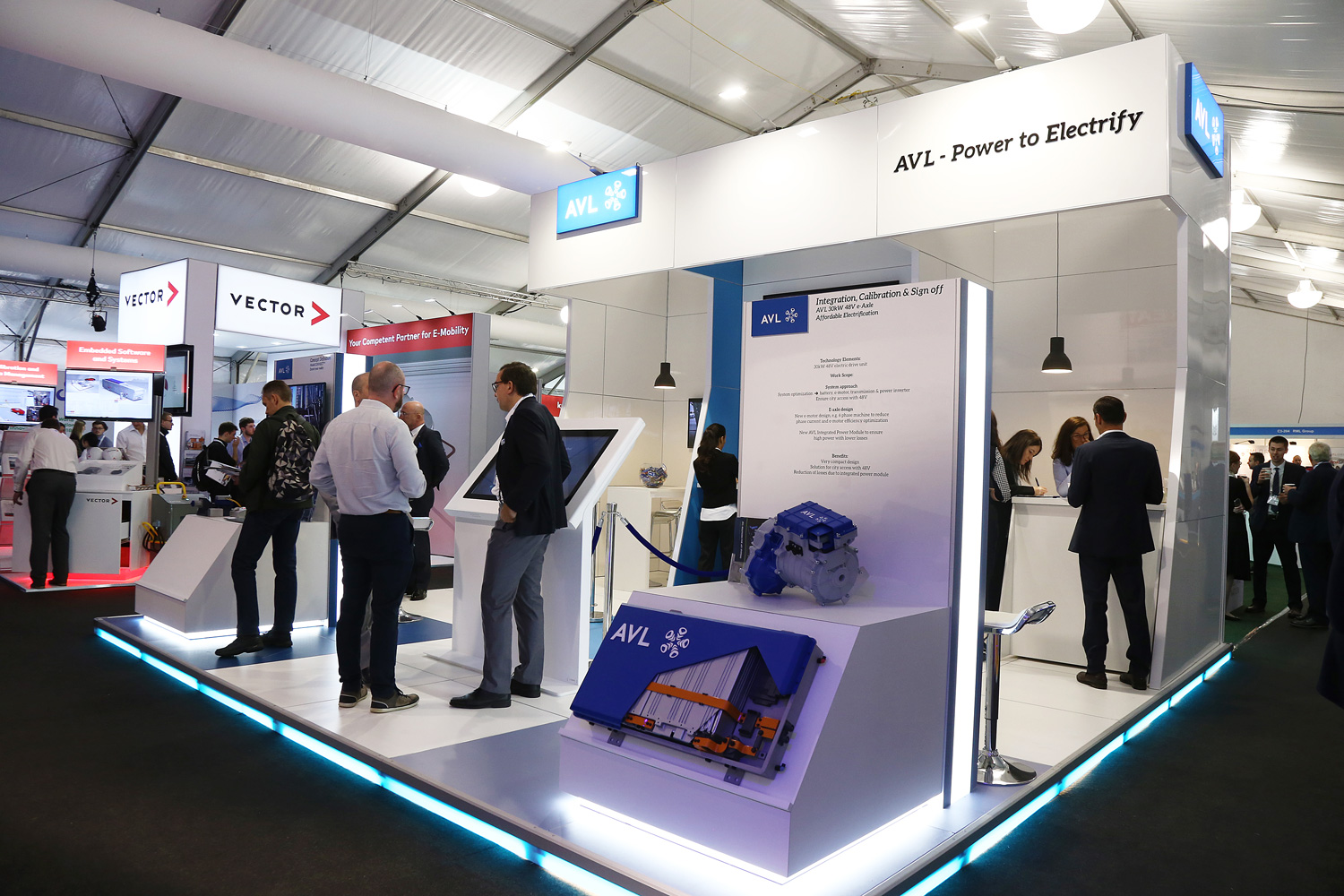 AVL is dedicated to creating advanced technologies that open up new doors for its customers. The combination of art and science drives the company forward. Damn Good recently create a new stand design on behalf of AVL for use at the Low Carbon Vehicle 2018 event. The brand new stand design was open on 3 sides and had a footprint of 6m x 6m. The stand offered a private meeting space alongside more informal areas for chatting. A hospitality area and interactive displays engaged and captured stand visitors. With a virtual reality interactive area, stand visitors were amazed.